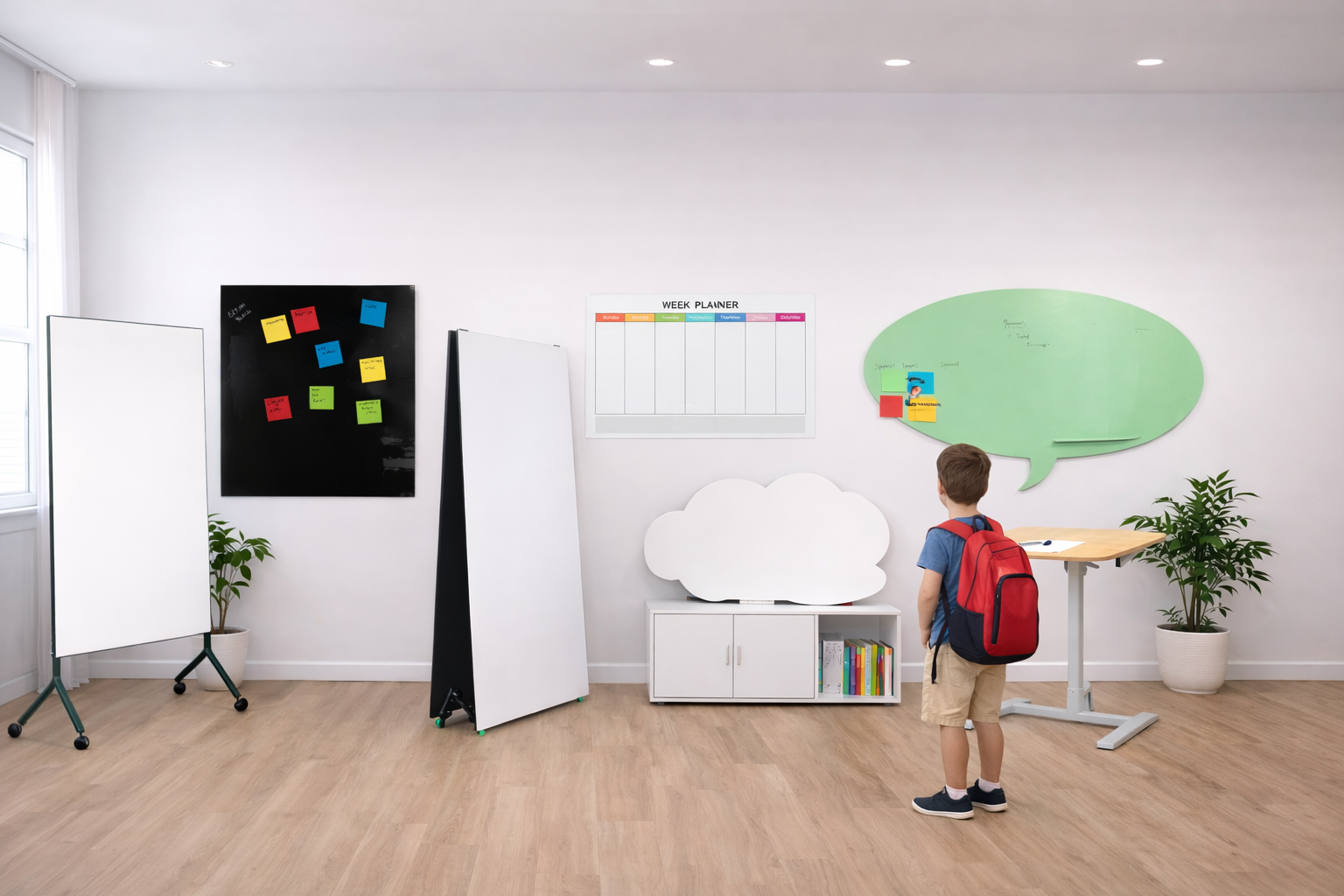 A practical set of office essentials built for meeting rooms and everyday workspace needs. Includes professional whiteboards and flexible desk solutions that support clear communication and structured daily work.