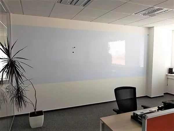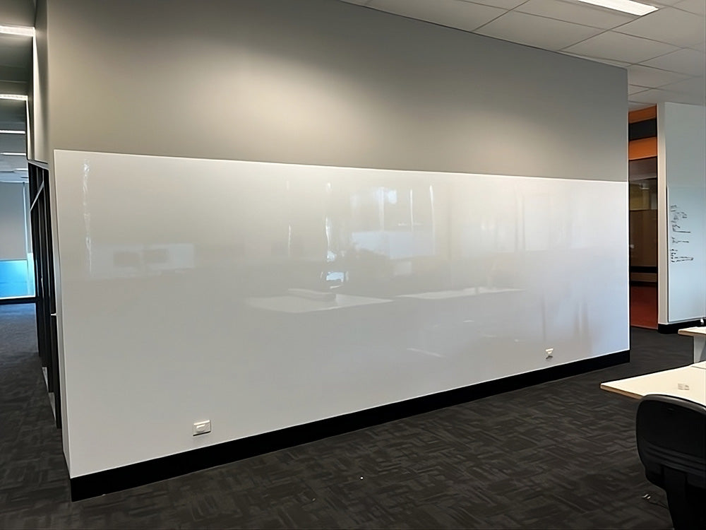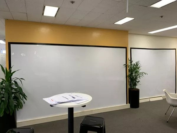 If you have a large project and want someone to installΒ we can also help with that. The product can been used on concrete panel walls and pillars (square and round), timber walls, plasterboard and glass. A great application is to use the sheet as a privacy screen and whiteboard in your glass meeting rooms.