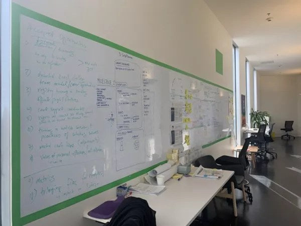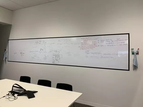 EzyVM is a magnetic dry erase whiteboard film designed to give greater functionality to walls and doors, exclusive to Collaborative Design Space. The self-adhesive nature of EzyVM makes it ideal for your home office and the flexible sizing means it can fit anywhere.